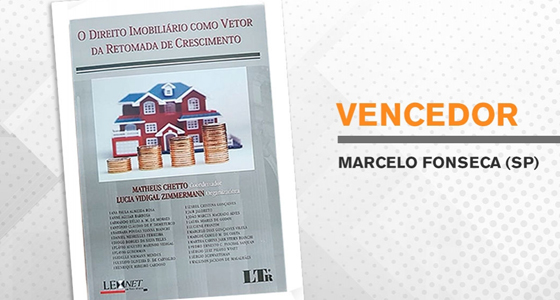 Marcelo Fonseca, parabéns! O livro “O DIREITO IMOBILIÁRIO COMO VETOR DA RETOMADA DE CRESCIMENTO”, coordenado por Matheus Chetto e organizado por Lucia Vidigal Zimmermann, é seu! Entraremos em contato! Parabéns!!! Aguardem o próximo sorteio!