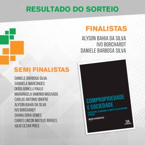 Ivo Borchardt, parabéns! O livro “Compropriedade e sociedade: estrutura, segurança e limites da autonomia privada” de Marcelo Barbaresco”, é seu! Entraremos em contato! Parabéns!!! Aguardem o próximo sorteio!